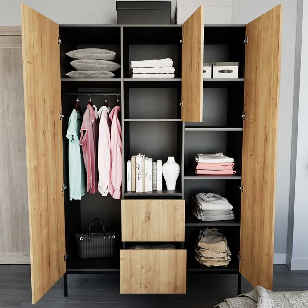 - Attraktiver Kleiderschrank in Wildeichefarben und Schwarz