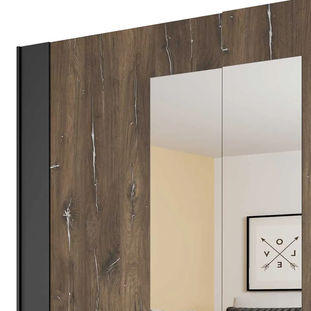 - Aktueller Schrank in Eiche dunkel, Silberfarben und Schwarz