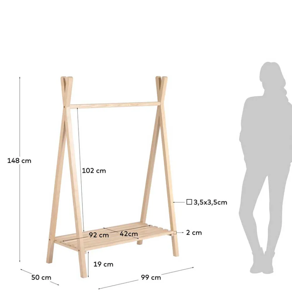 - Eine Gitterablage unten und eine Kleiderstange oben