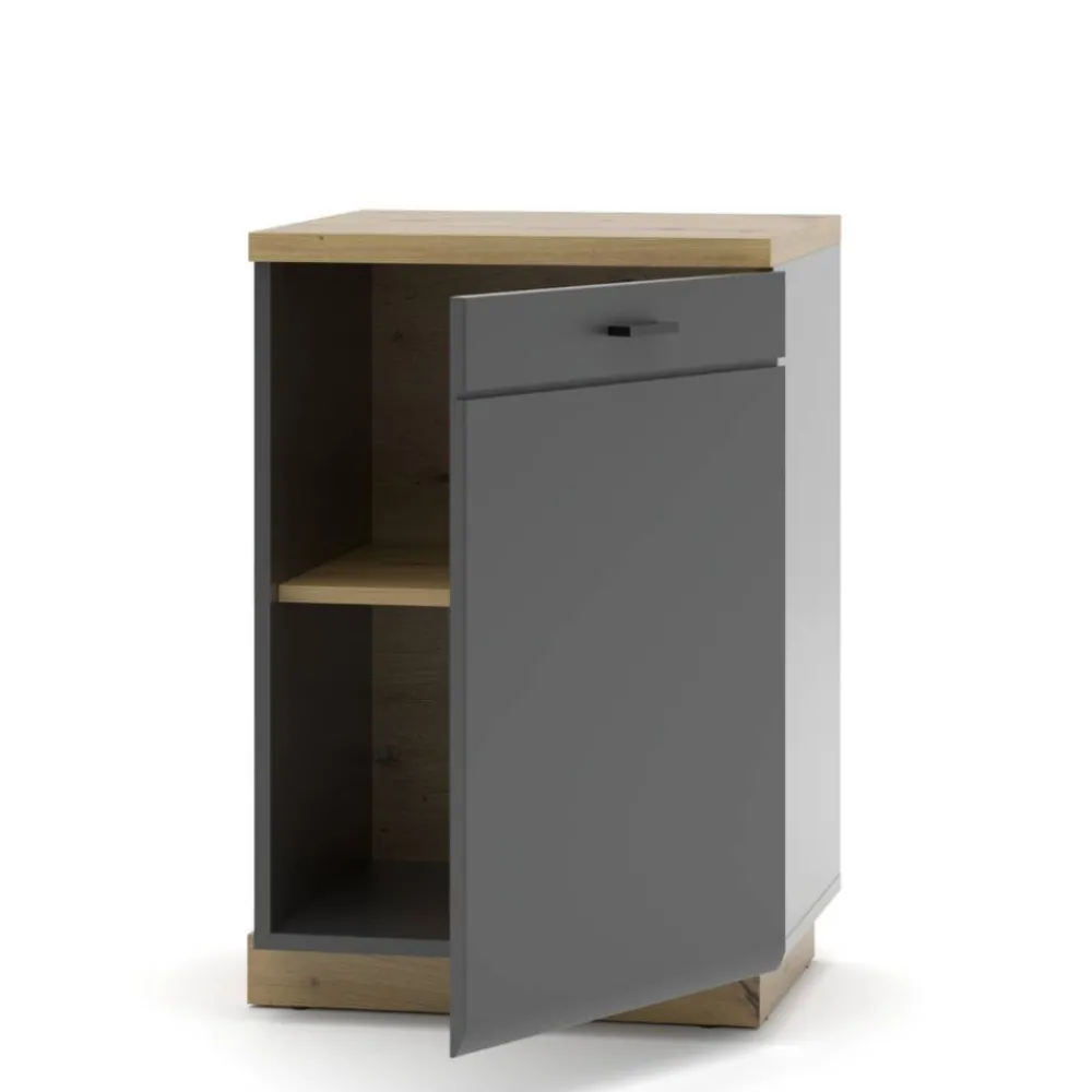 - Kompakter Wohnzimmerschrank in Dunkelgrau matt und Wildeichefarben
