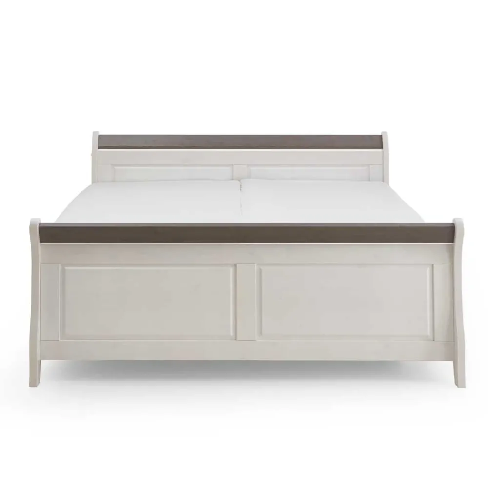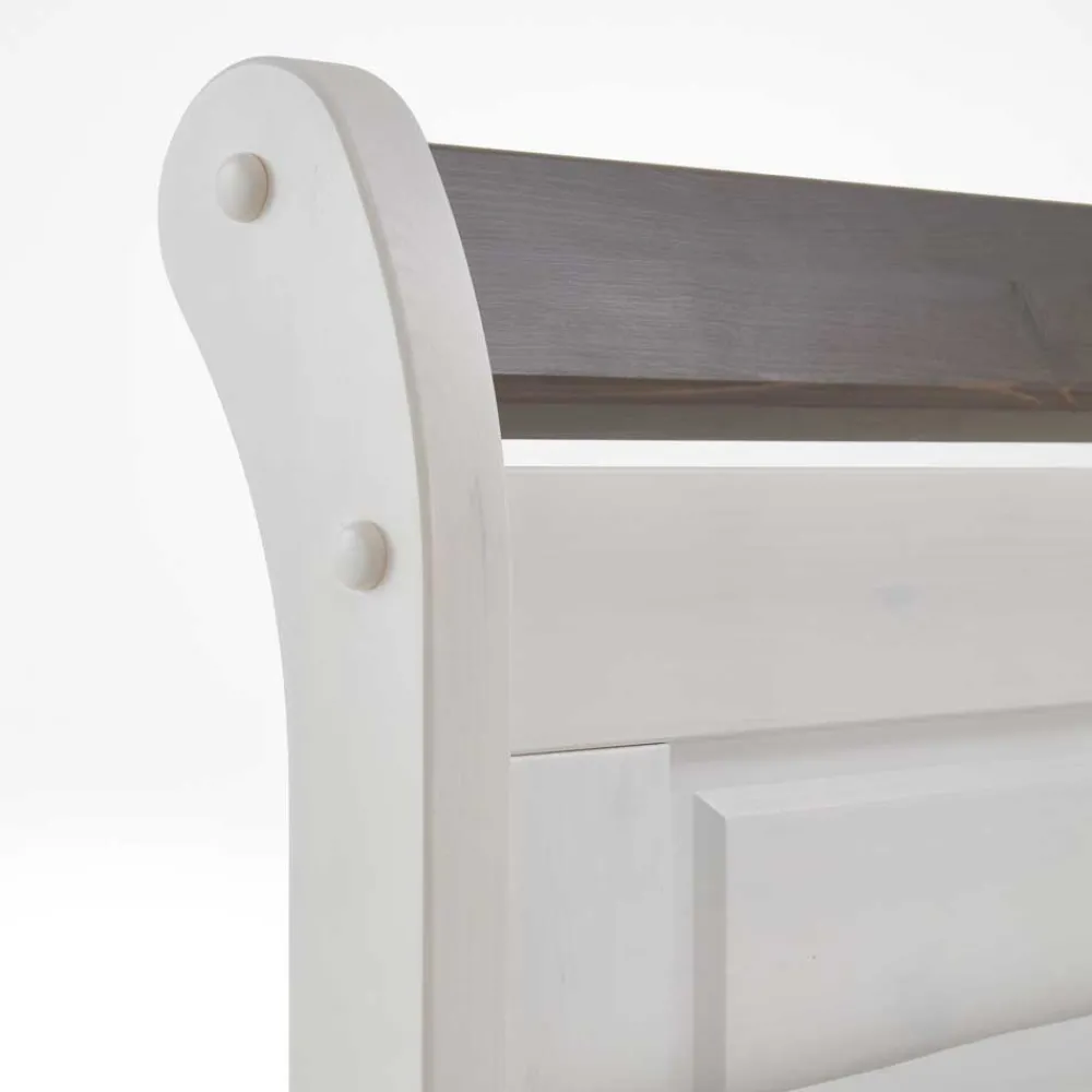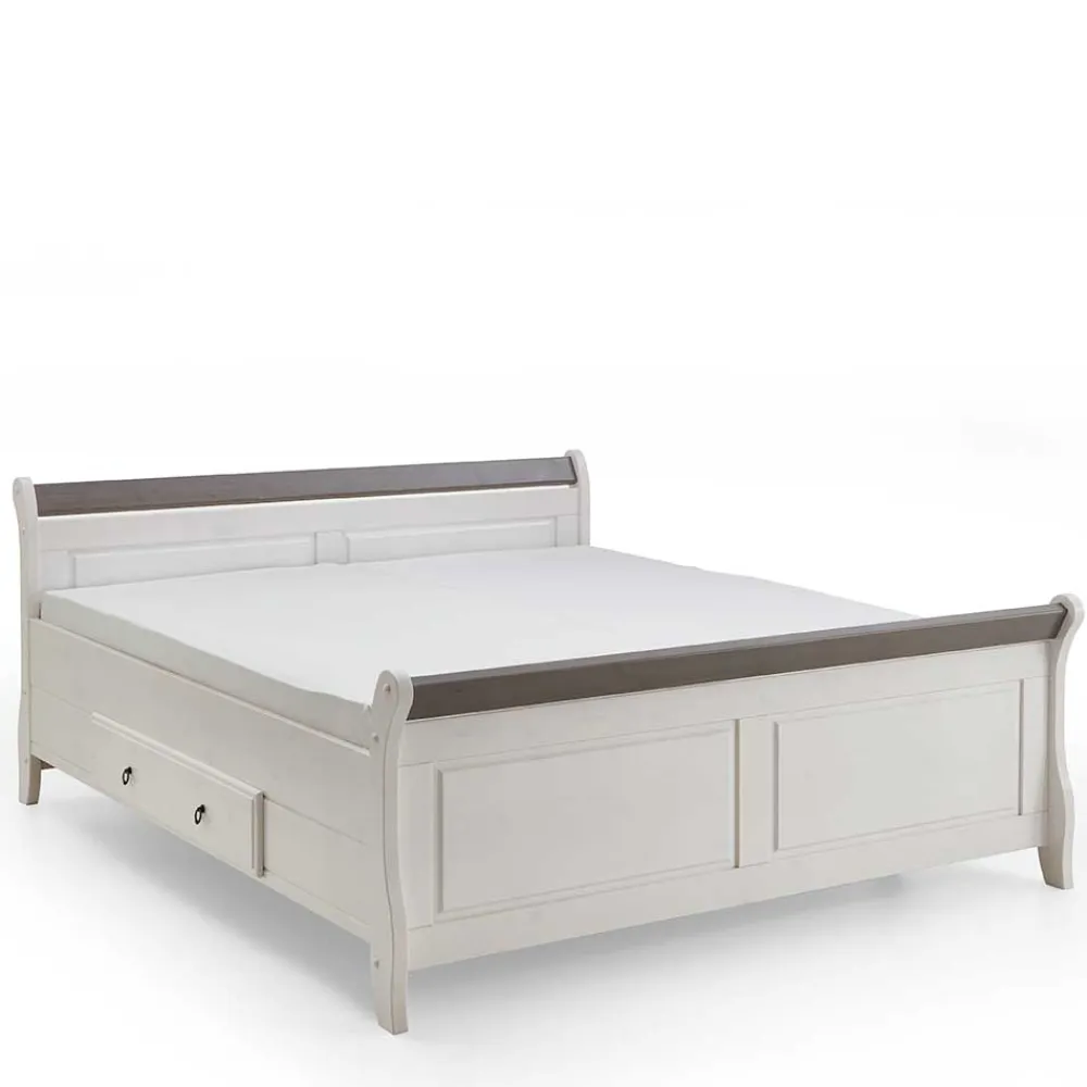 - Gemütlich wirkendes Doppelbett in Weiß abgesetzt mit Kiefer Grau