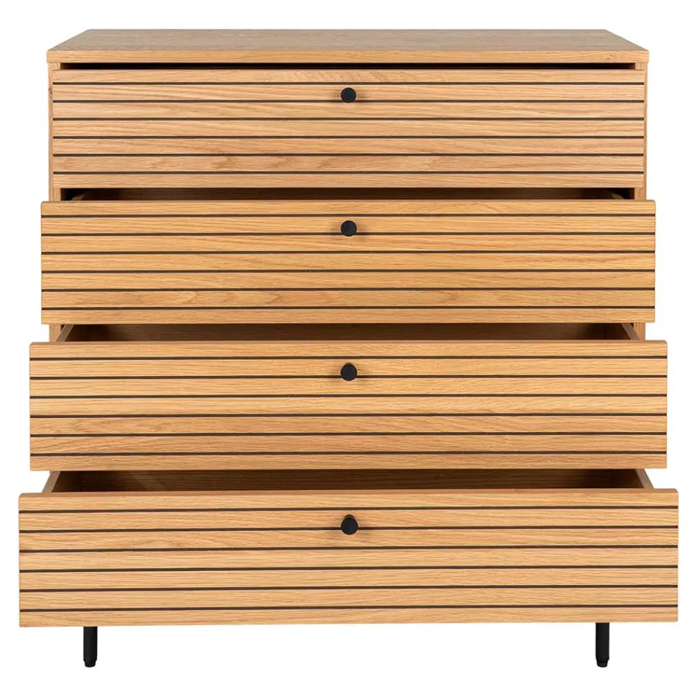 - Vier Schubladen mit Metallauszug bringen jede Menge Stauraum