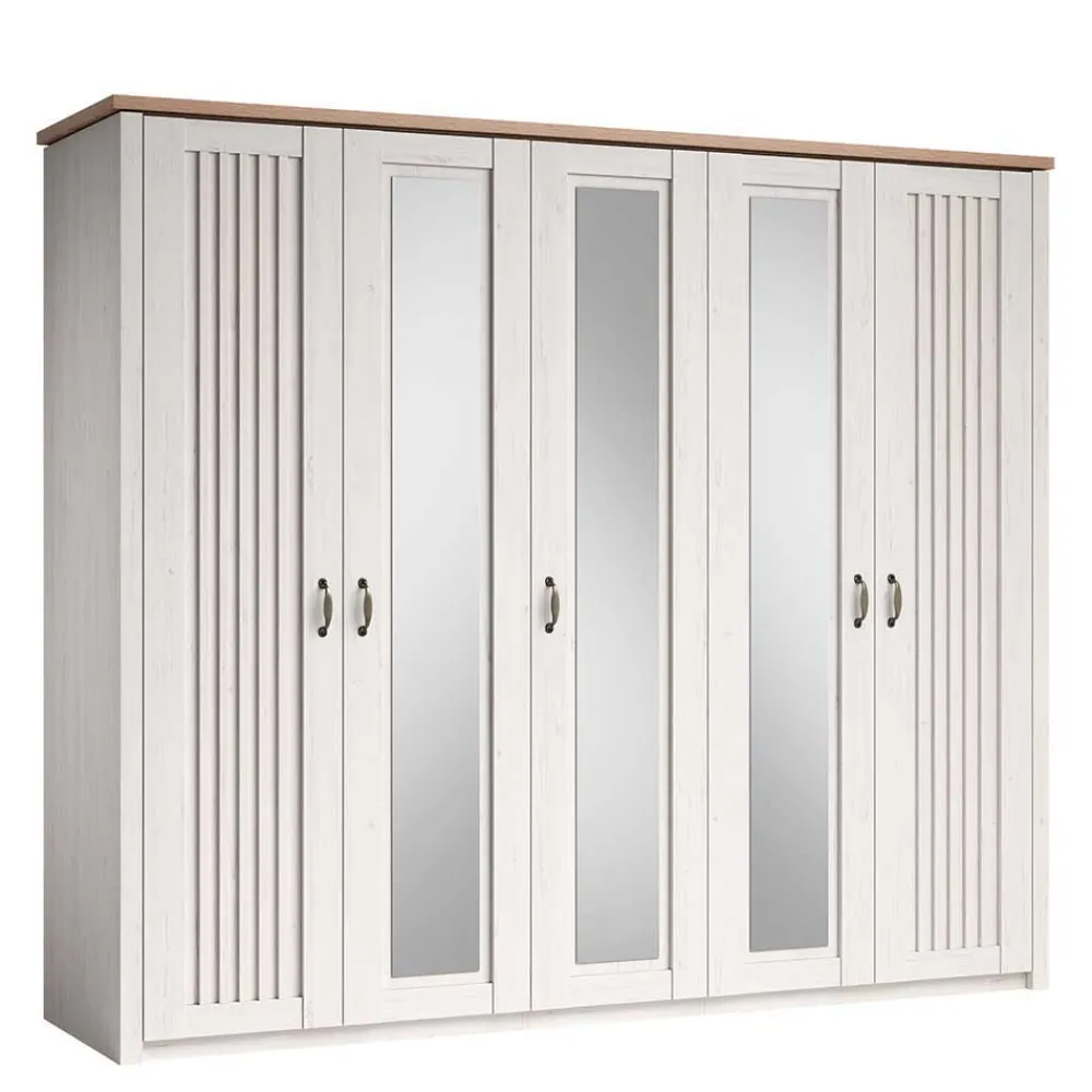 - Fünf Türen, davon drei mit Spiegelfläche, innen drei Facheinheiten