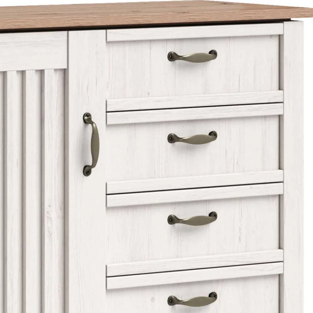 - Strapazierfähige Oberflächen, in Holzoptik Weiß und Eiche foliert