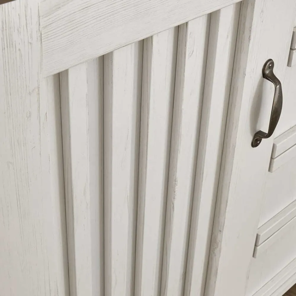- Hinter den Doppeltüren zwei Einlegeböden und eine Kleiderstange, hinter der mittleren Tür vier EinlegebödenHinter den Doppeltüren zwei Einlegeböden und eine Kleiderstange, hinter der mittleren Tür vier Einlegeböden
