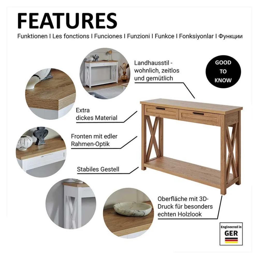 - Wohnlicher Konsolentisch in Eichefarben