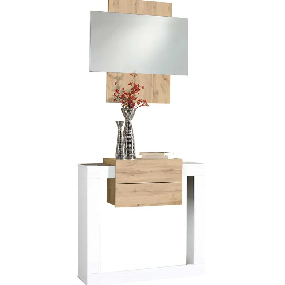 - Auffallende Dielenmöbel in Weiß und Wildeichefarben