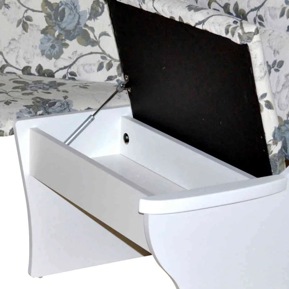 - Zwei Klappen mit Gasdruckfedern sorgen für Stauraum