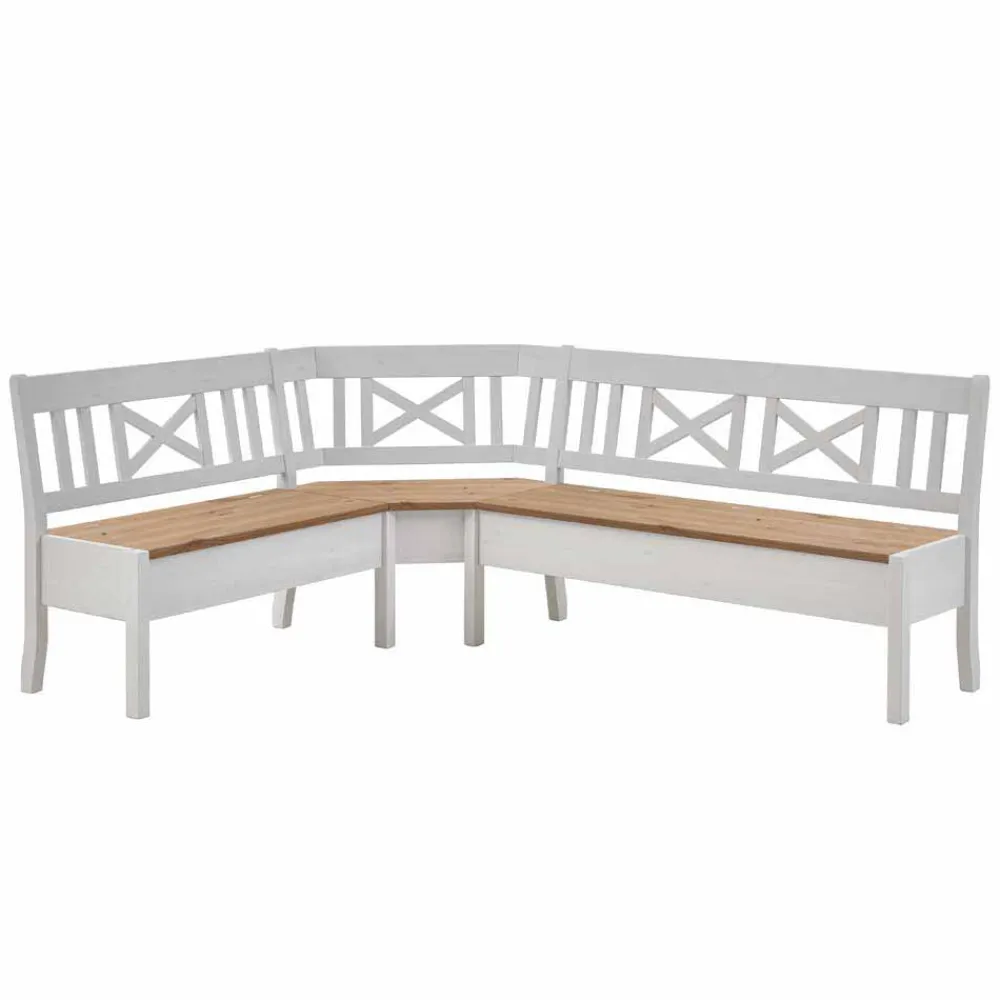 - Gemütliche Eckbank in Weiß und Kiefer laugenfarbig