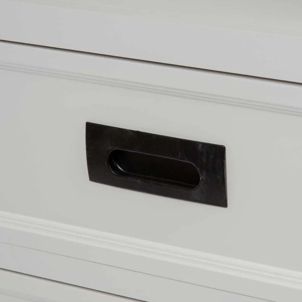 - Deckplatten aus braunem Tannenholz, grau gewischt, Korpus und Front aus lackierter MDF