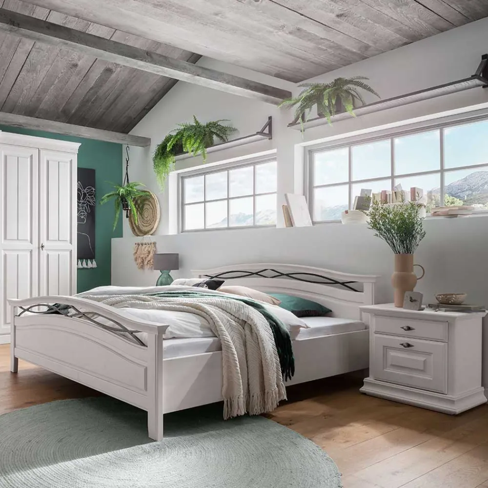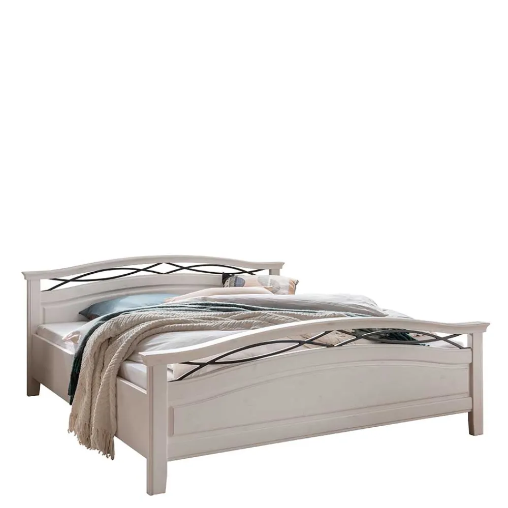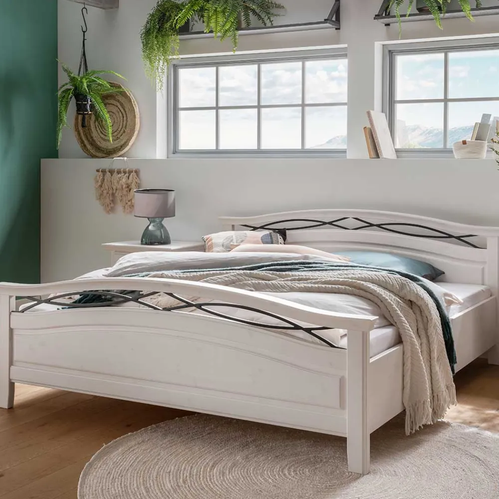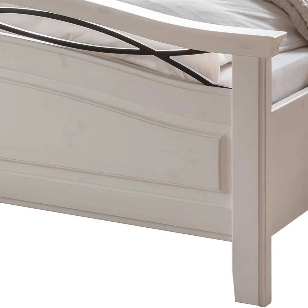 - Kopf- und Fußteil dekorativ geschwungen und mit Metallstäben verziert