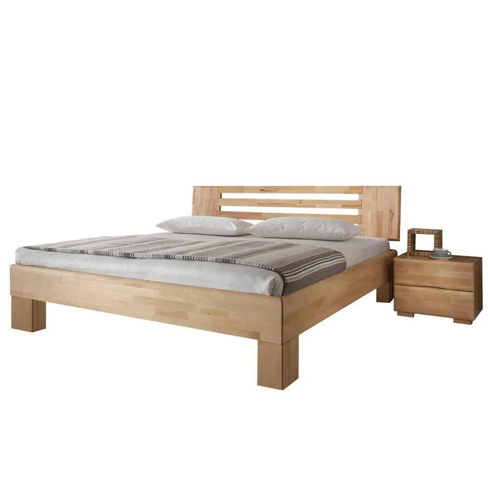 - Modernes Bett in Kernbuchefarben mit Nachtkommoden