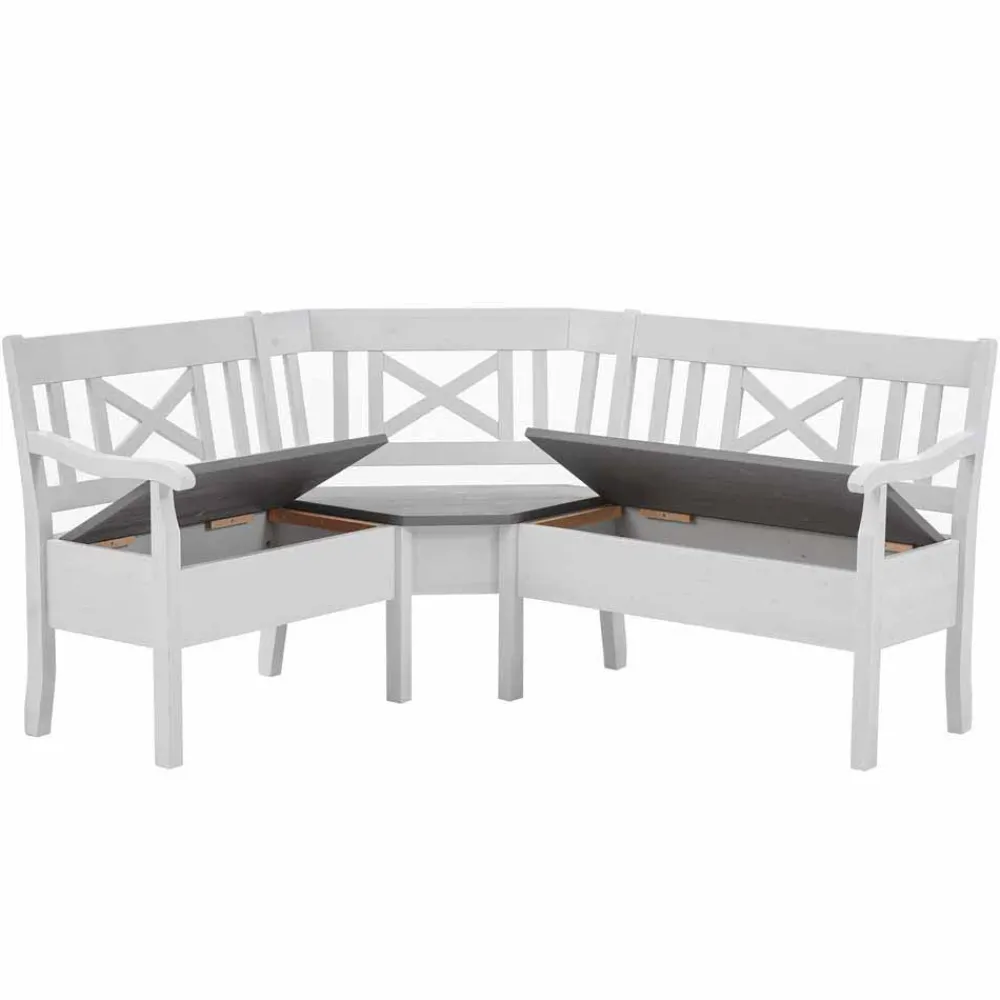 - Komfortabel Eckbank in Weiß und Grau