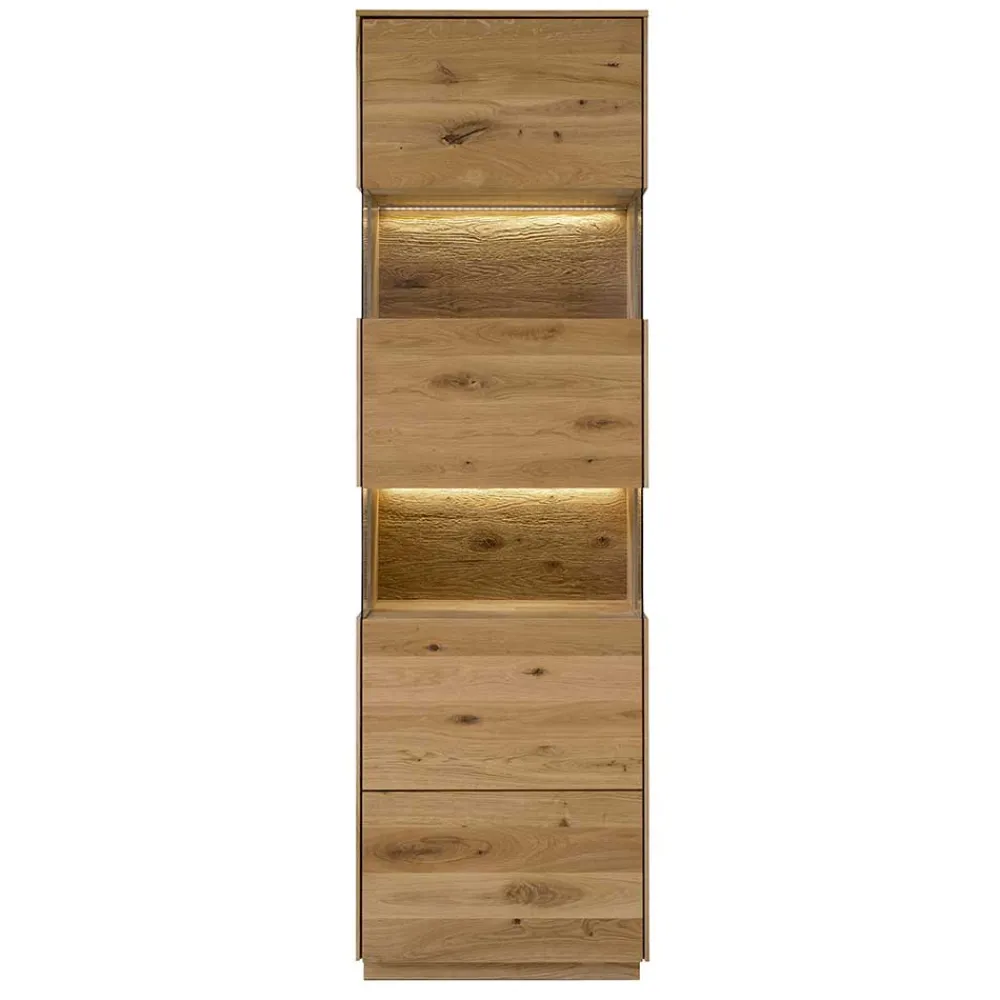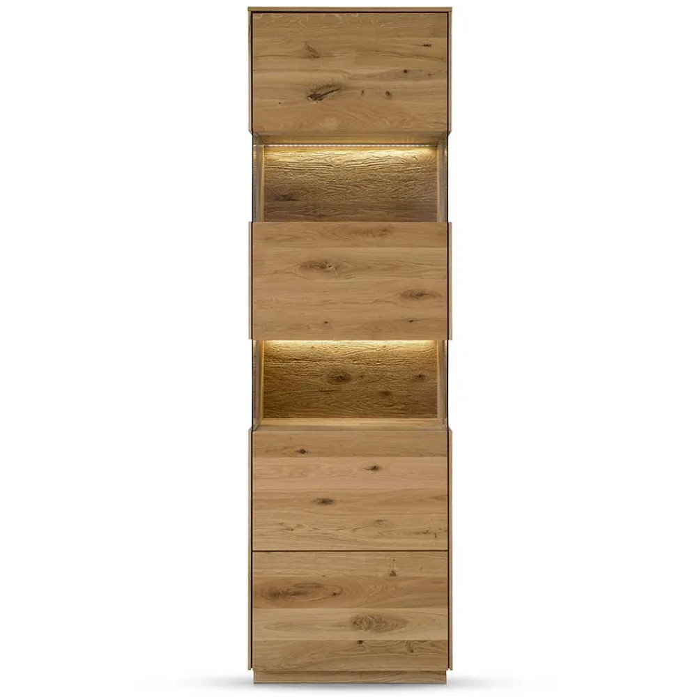 - Sichtbare Rückwand aus sandgestrahltem Holz mit plastischer Struktur