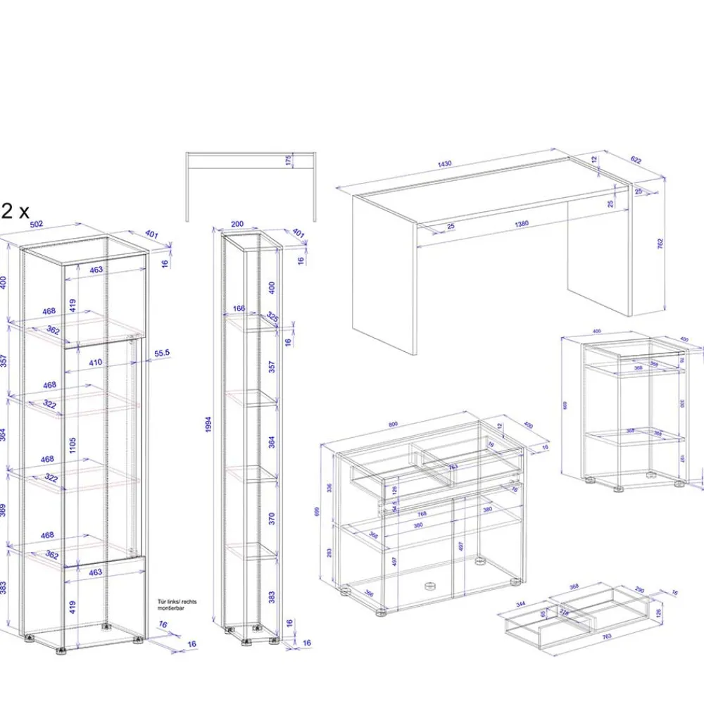 - Maße Schrank Kombination: BxHxT: 120x200x40 cm