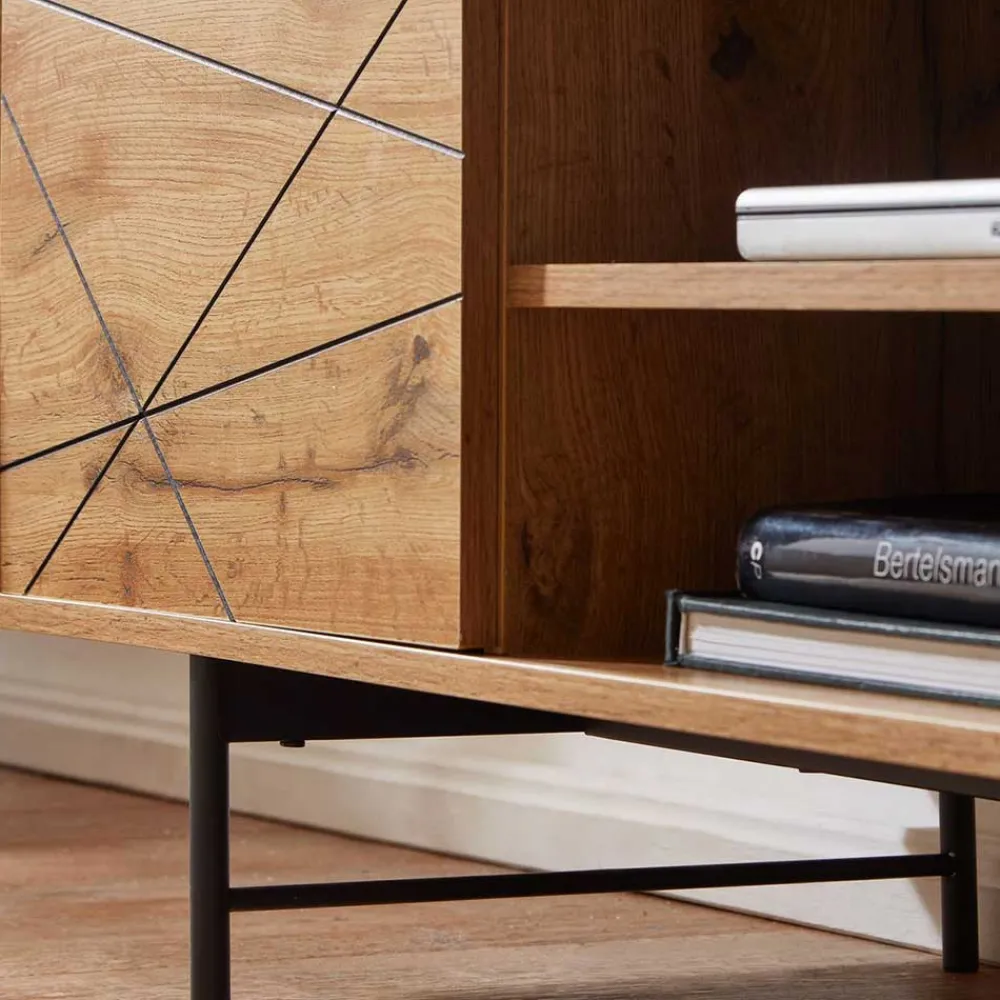 - Geräumiges TV Lowboard in Eichefarben und Schwarz