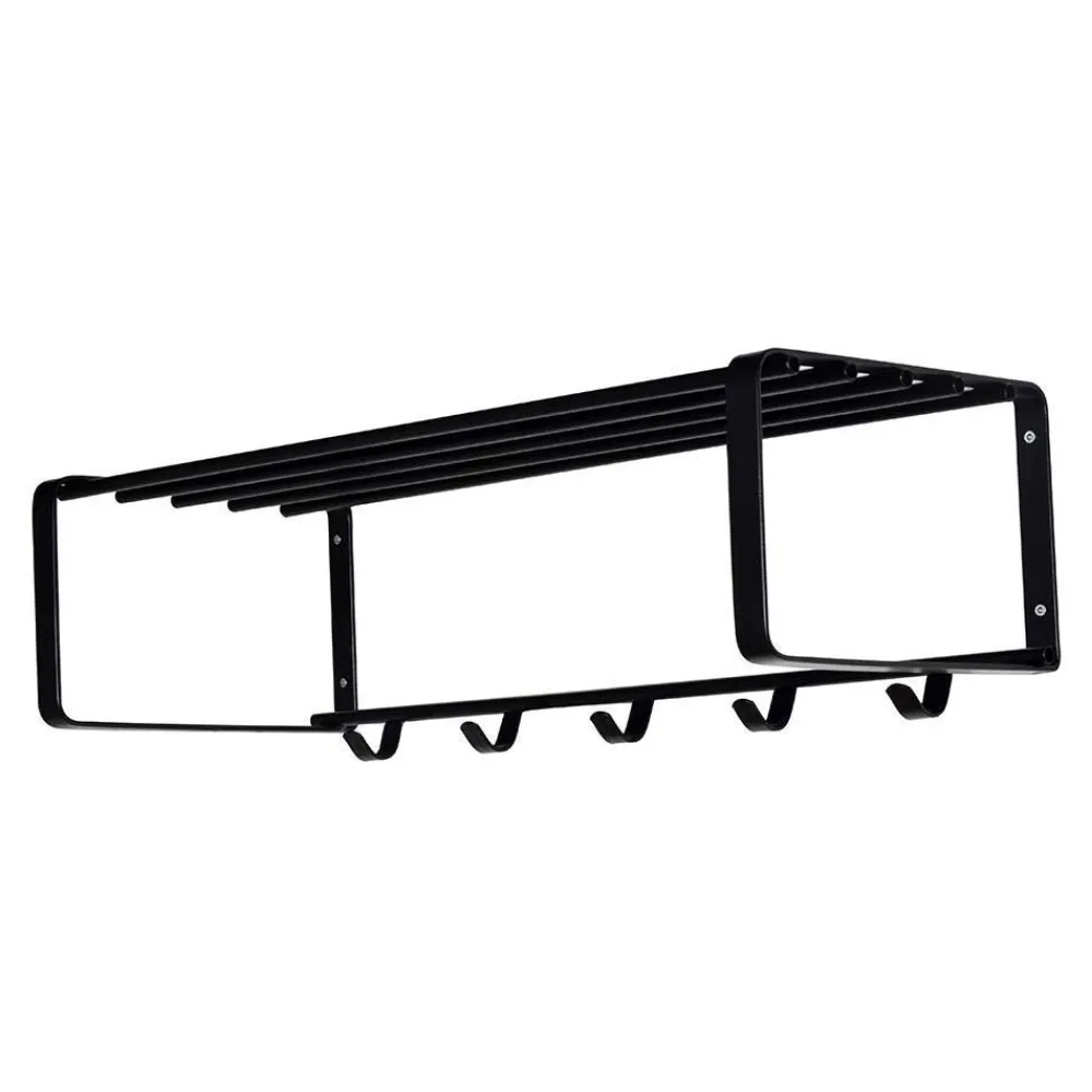 - Eine geräumige Hutablage aus Metallstreben bietet zusätzlichen Stauraum und Platz für Kleiderbügel