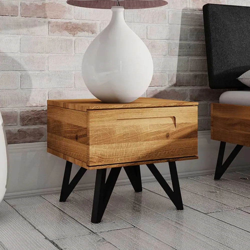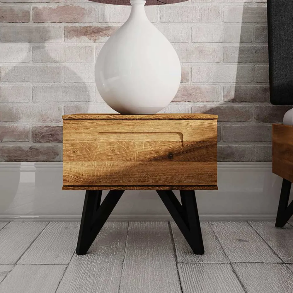 - Attraktive Nachtkommode in Wildeichefarben und Schwarz