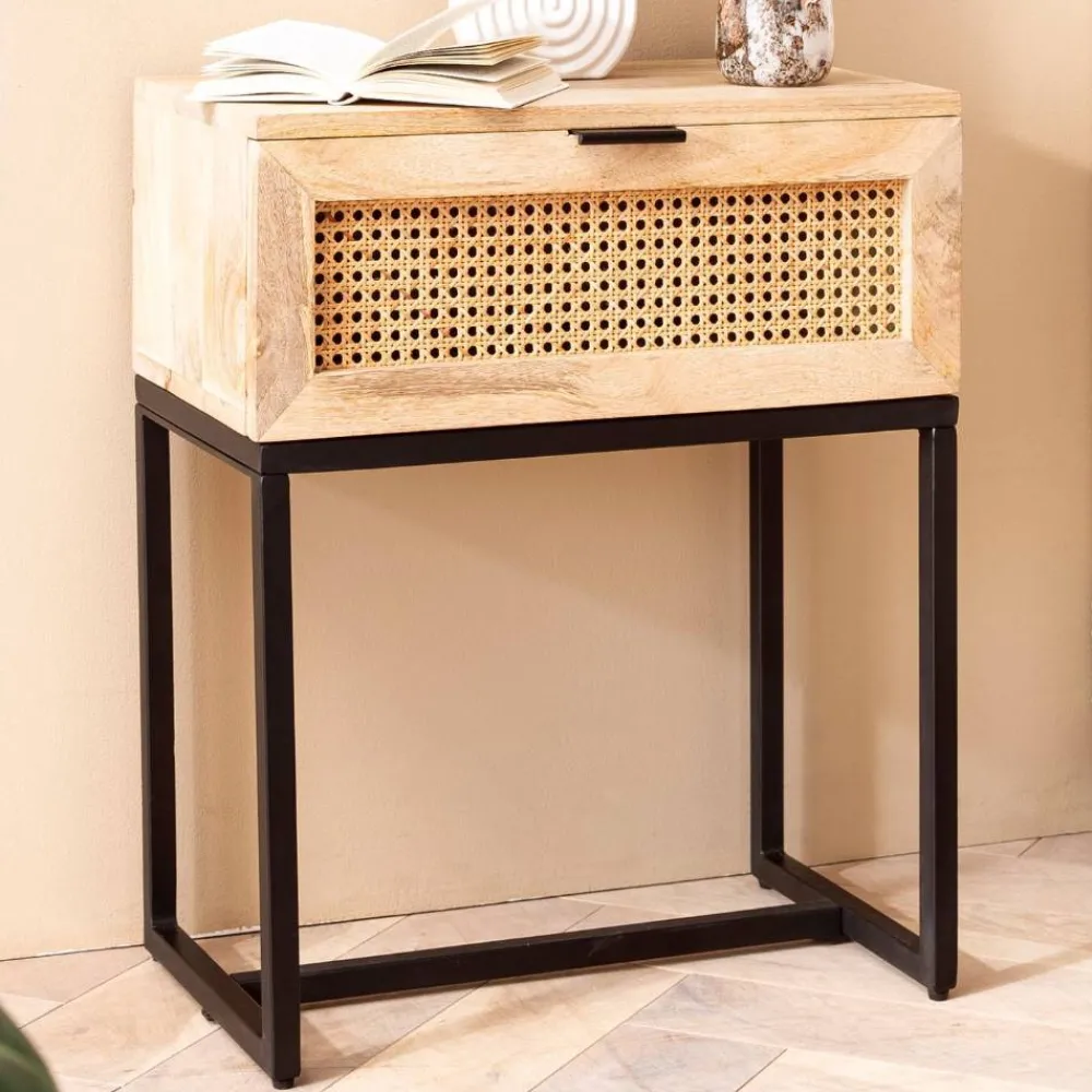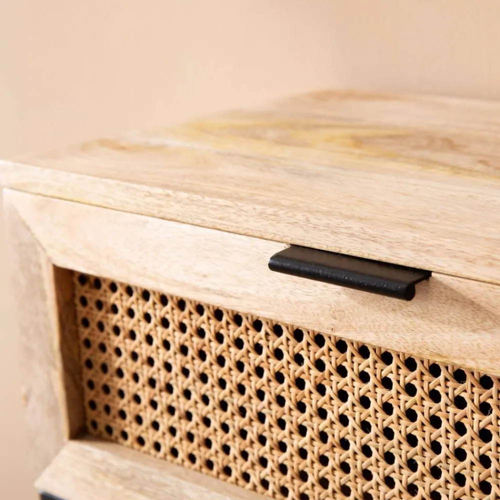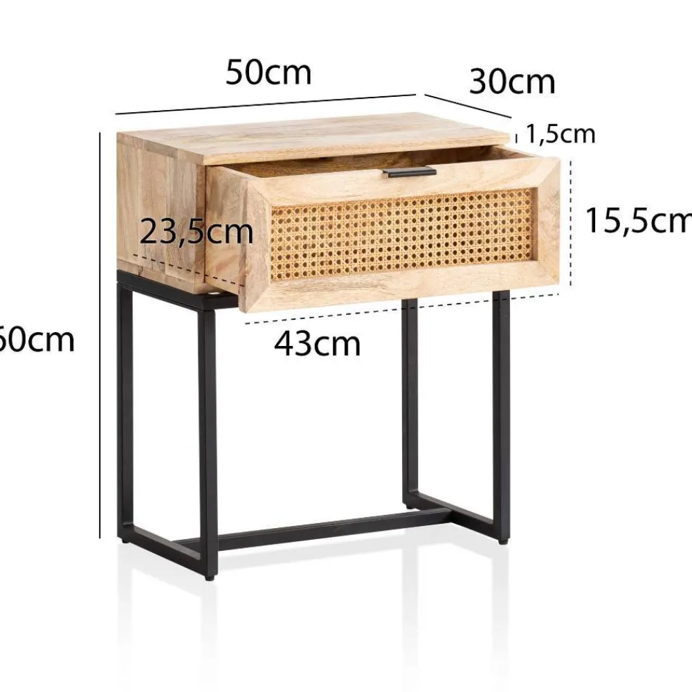 - Aus Mangobaum Massivholz, Rattan, Metall und MDF hergestellt