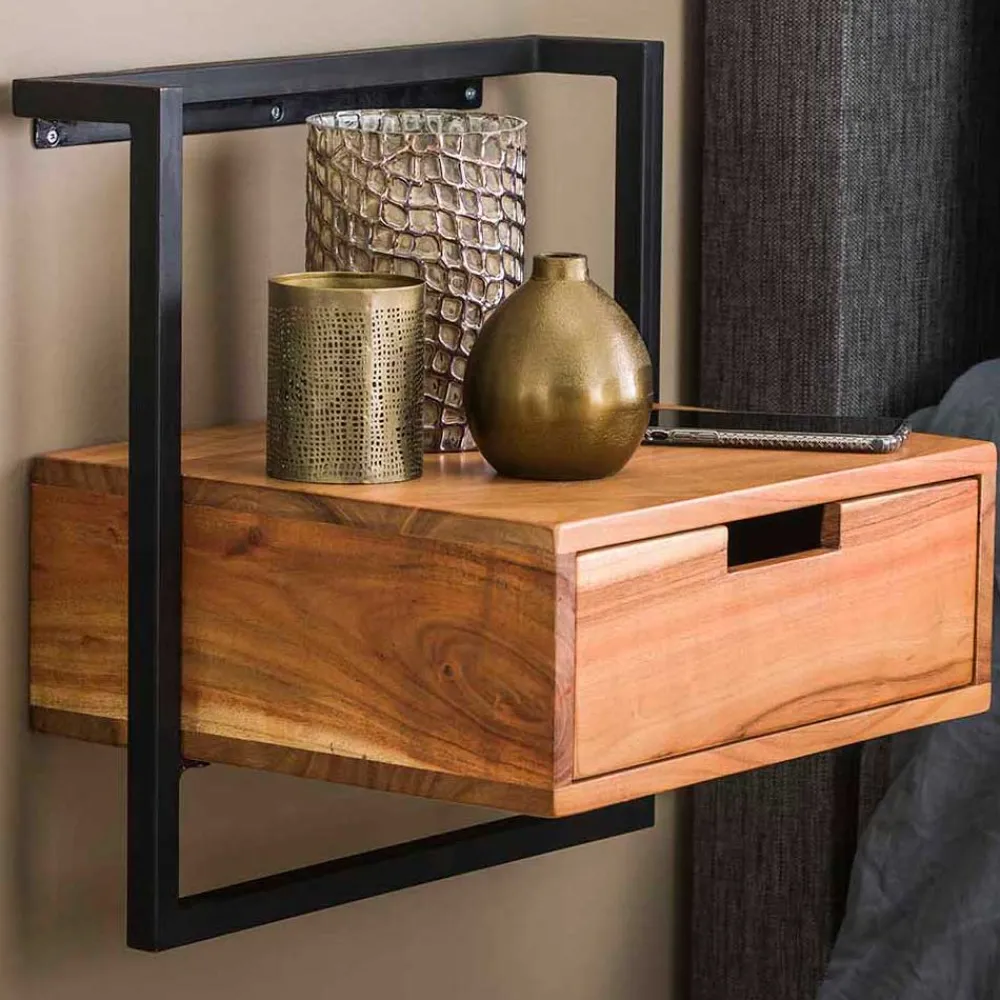 - Dekorative Nachtkonsole in Akaziefarben und Schwarz