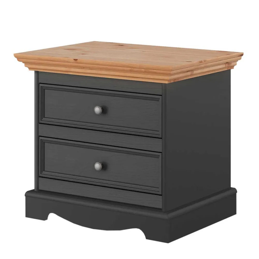 - Geräumige Nachtkommode in Grau und Kieferfarben