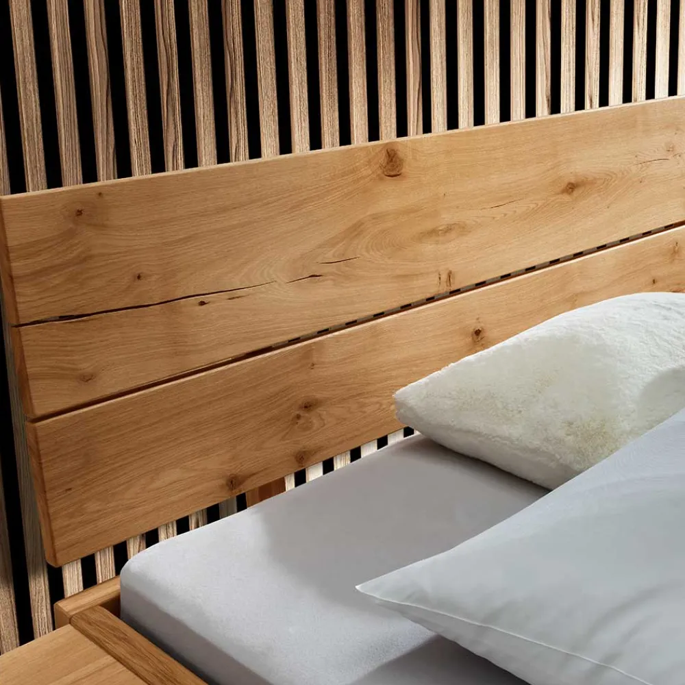- Kantiges Bett in Wildeichefarben und Schwarz