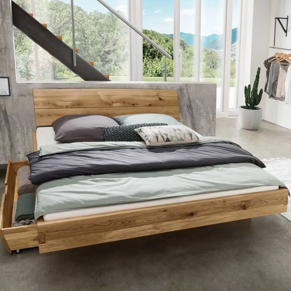 - Inklusive zwei Stauraum-Bettkästen auf Rollen, Maße (BxHxT): ca. 130x15x64 cm
