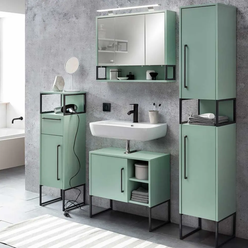 - Trendiger Bad-Hochschrank in Mintgrün und Anthrazit