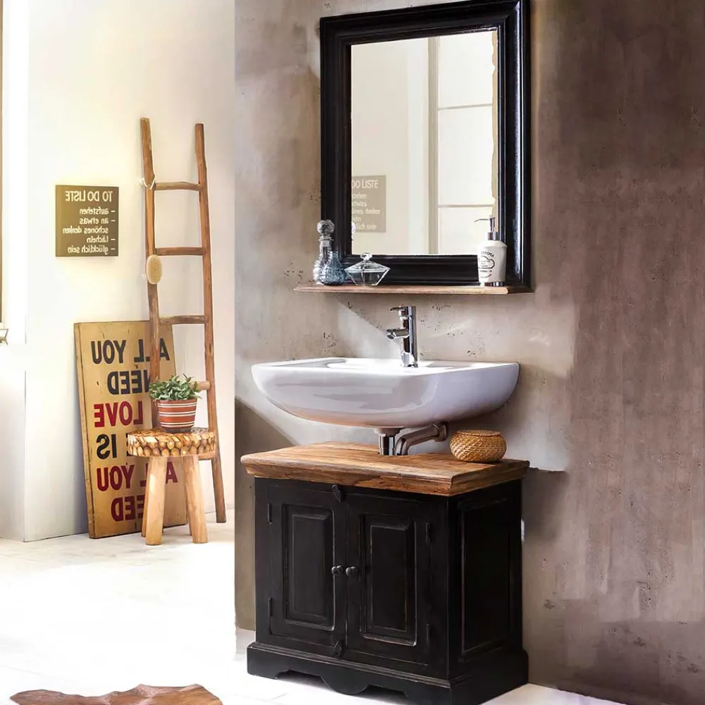 - Mediterranes Badezimmer Set in Schwarz und Honigfarben