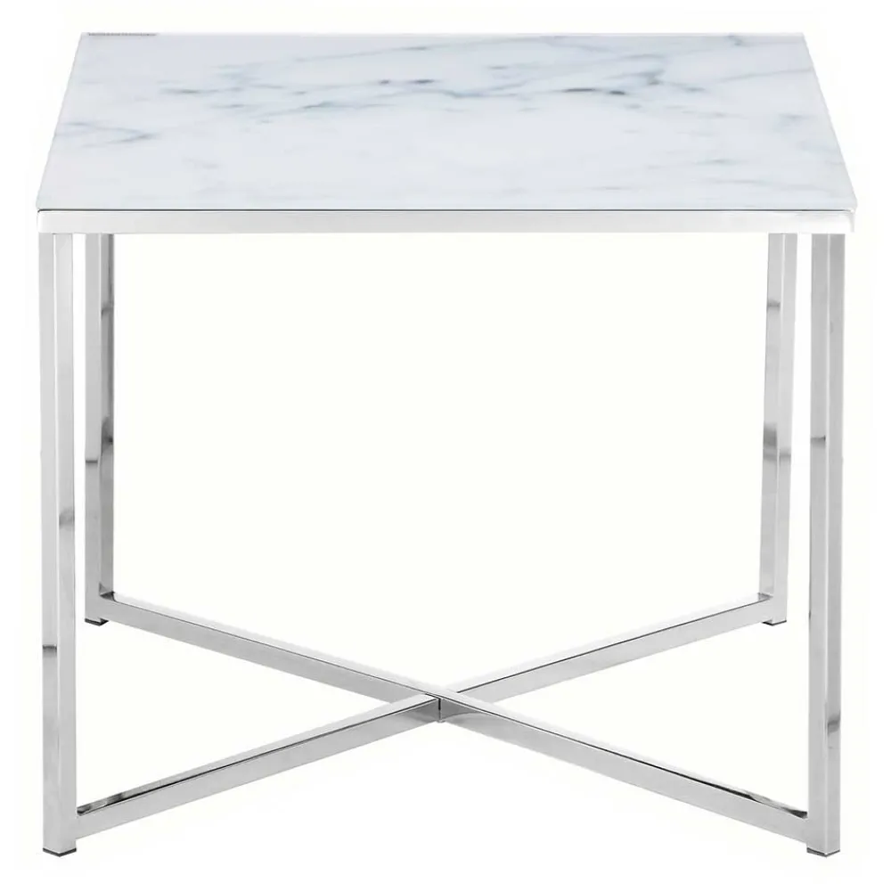 - Ansprechender Beistelltisch in Weiß, Hellgrau und Chromfarben