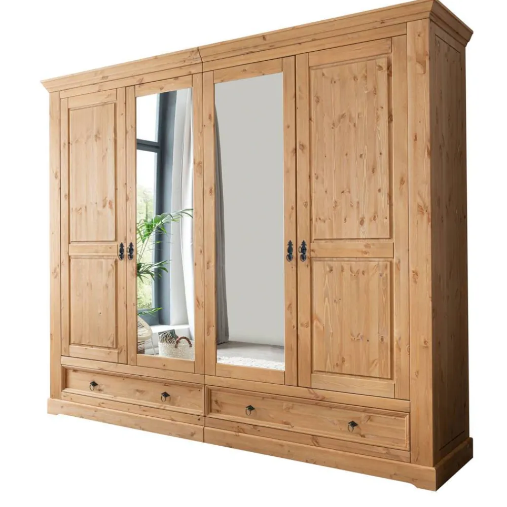 - Aus massivem Kiefernholz und Spiegelglas hergestellt