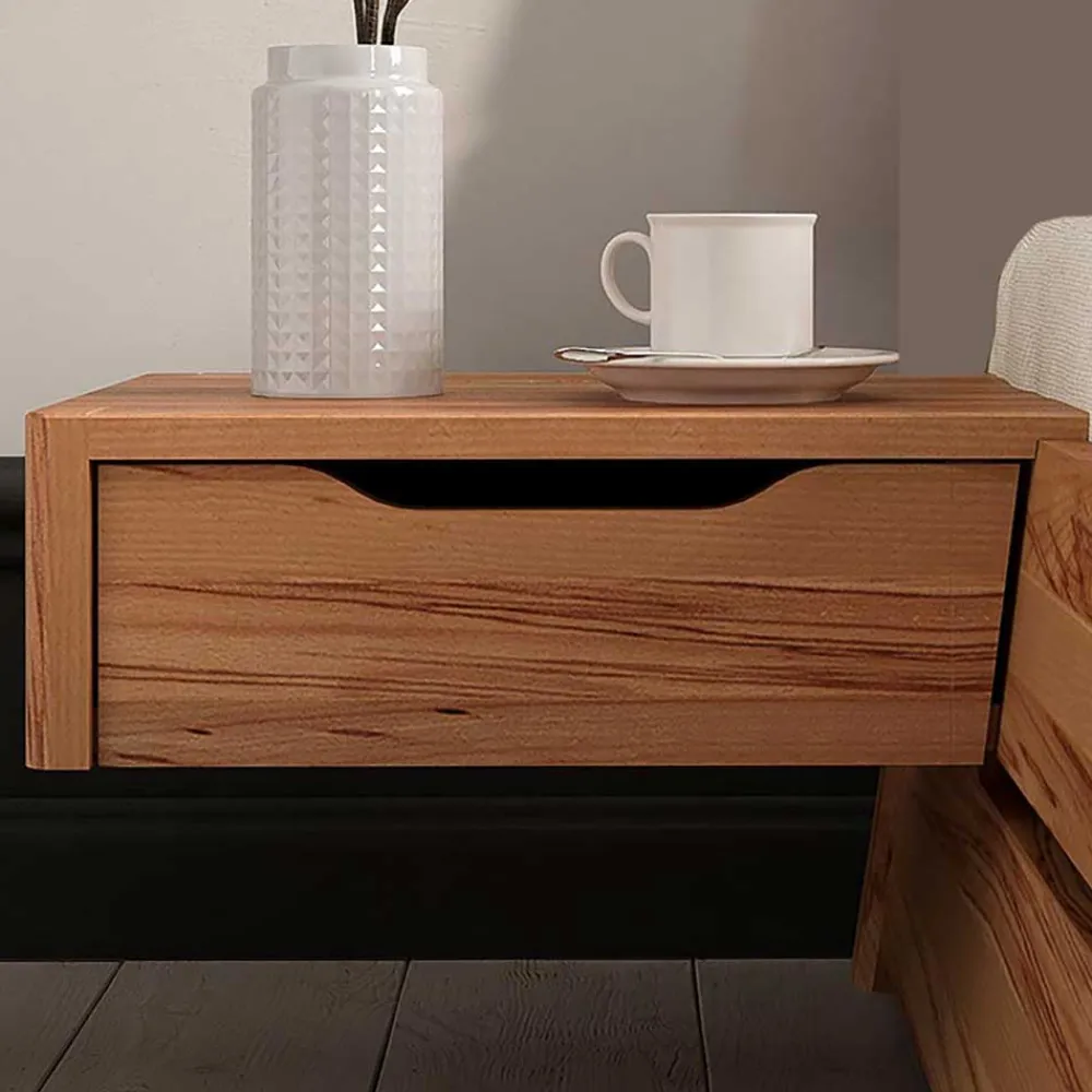- Dieses moderne Bett besticht durch seine warme Kernbuchefarbe