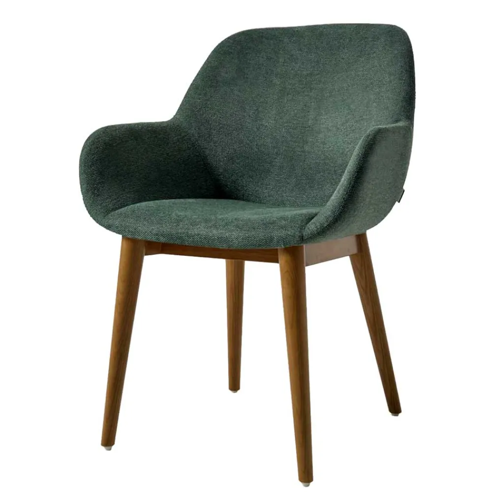 - Ansprechende Stühle in Dunkelgrün und Esche dunkel