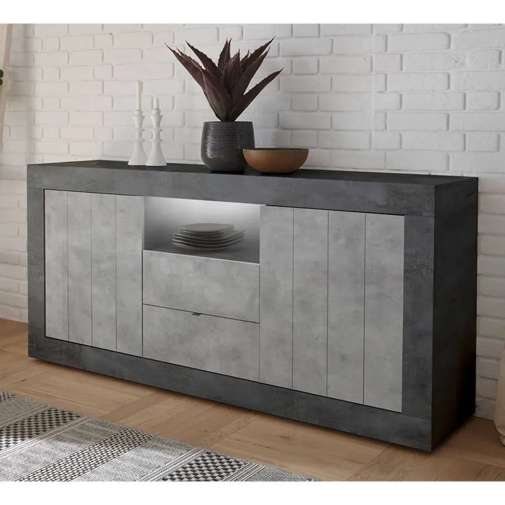 - Pflegeleichte, melaminbeschichtete Oberfläche, Korpus in dunkelgrauer Stein-, Rest in Betonoptik