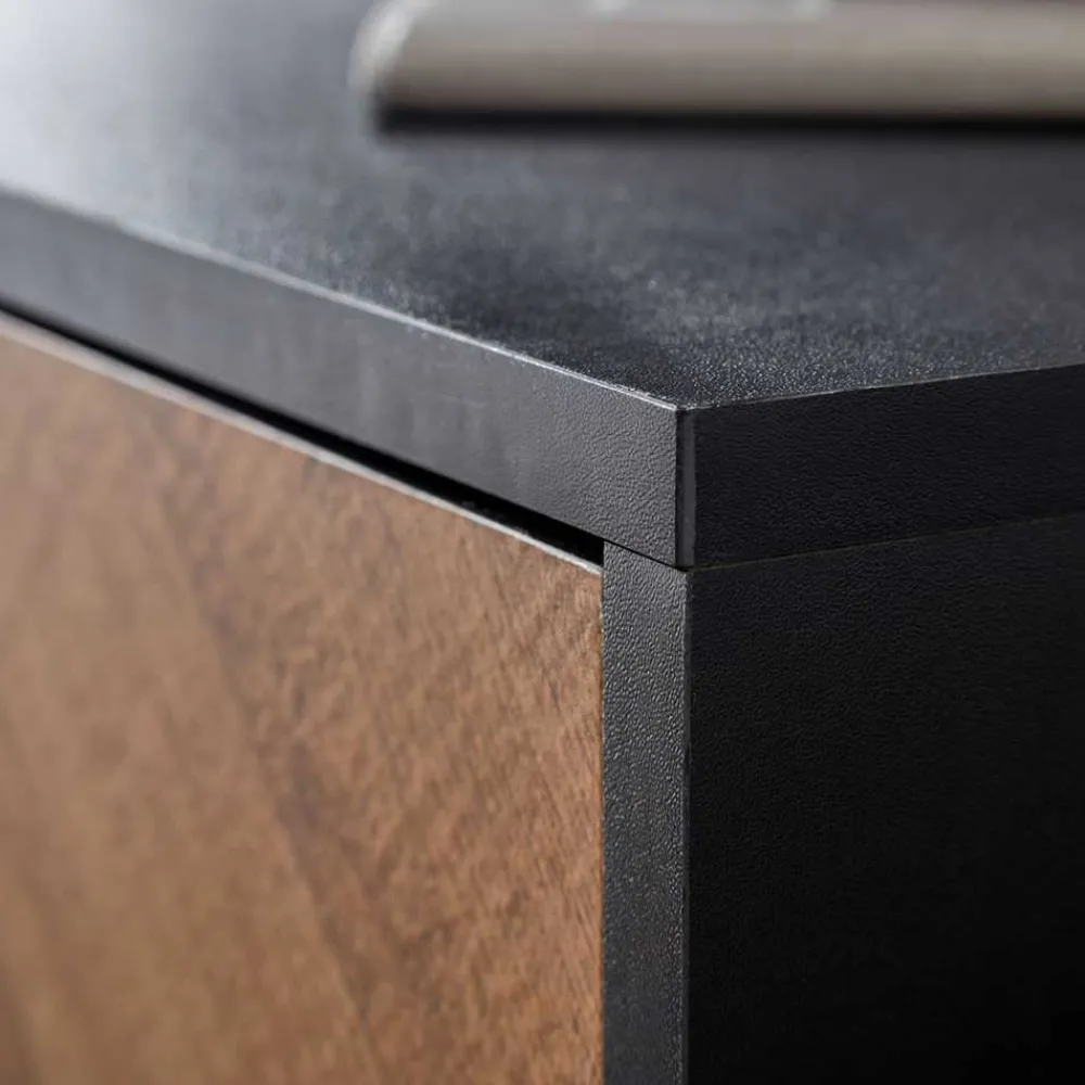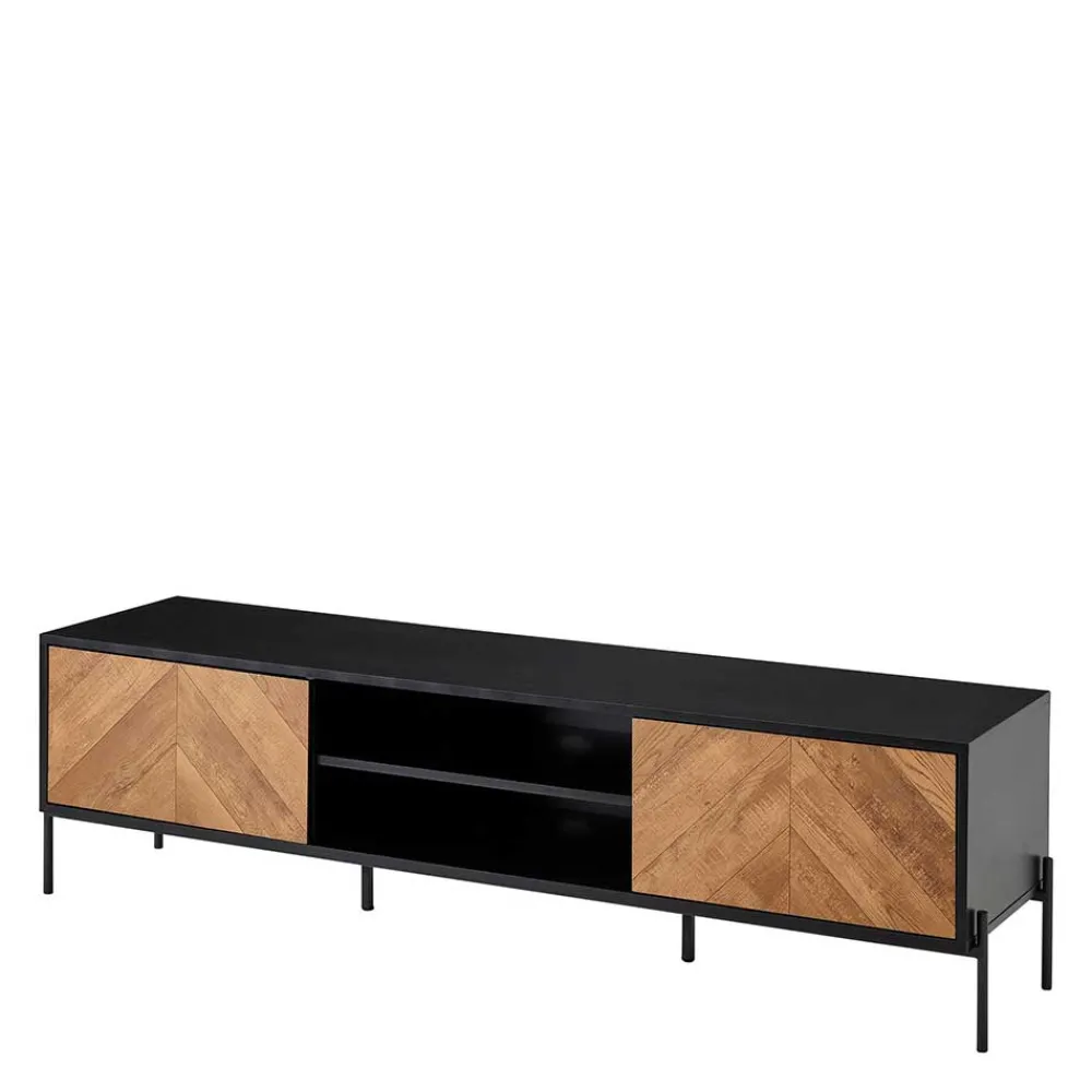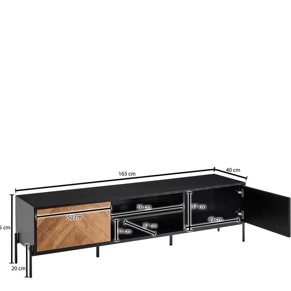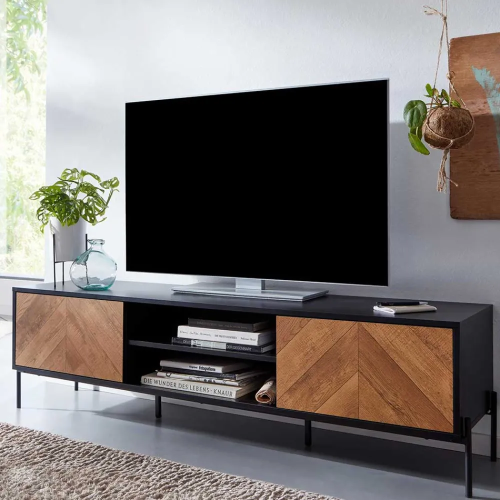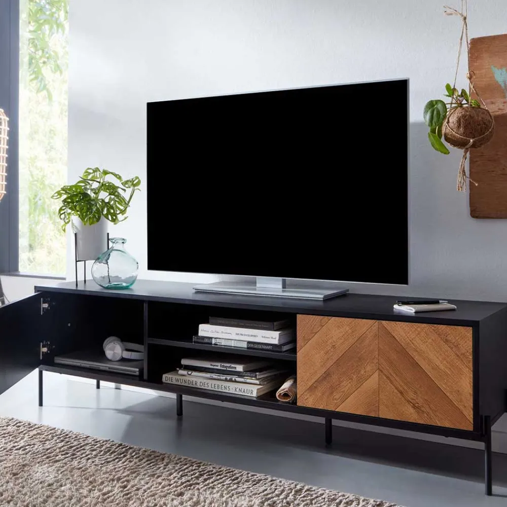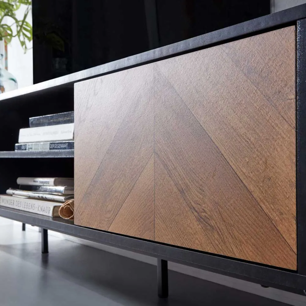 - Ansprechendes TV-Board in Eichefarben und Schwarz