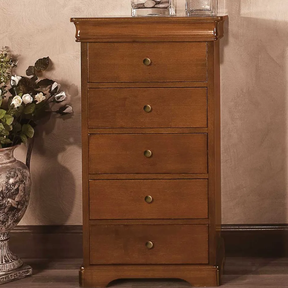- Fünf Schubladen mit Holzauszug plus einer versteckten Schublade oben