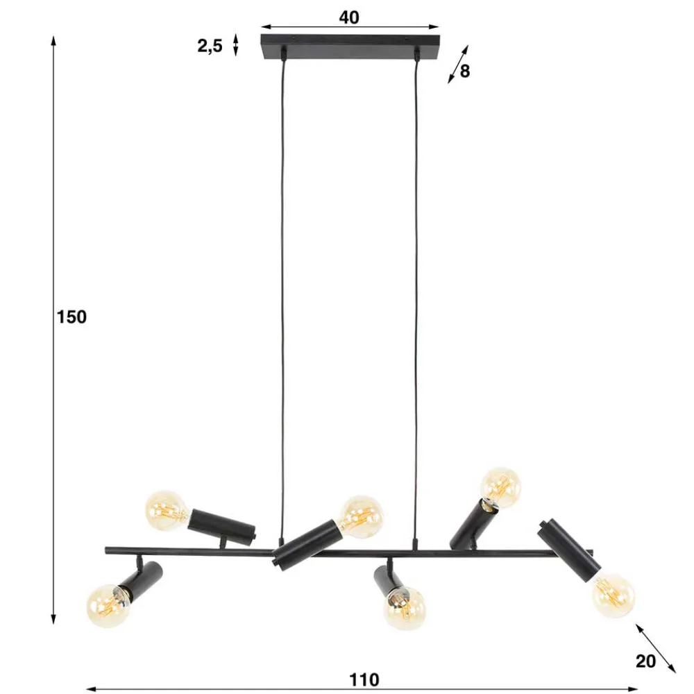 - Lieferung ohne Leuchtmittel, sechs Fassungen E27, Schutzart IP20, max. 60W
