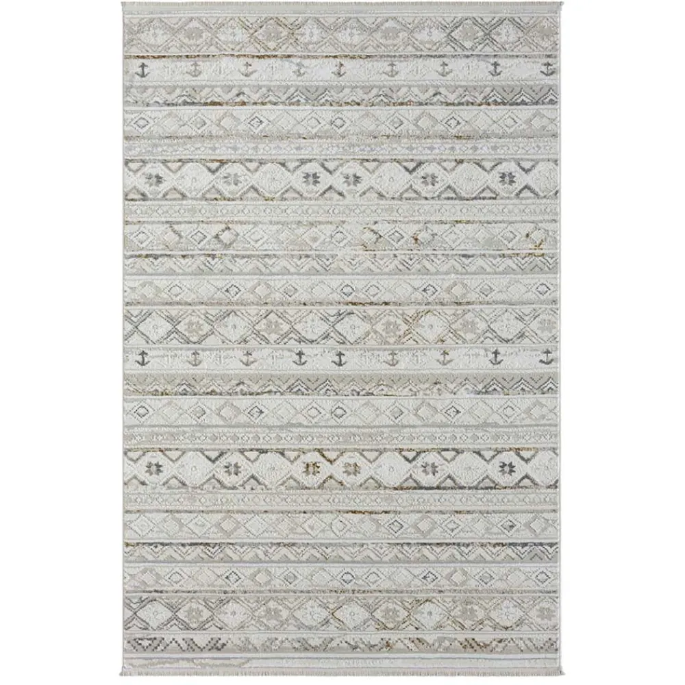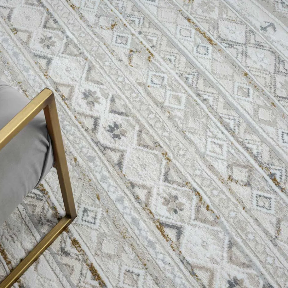 - Dekorativer Teppich in Hellgrau und Cremefarben