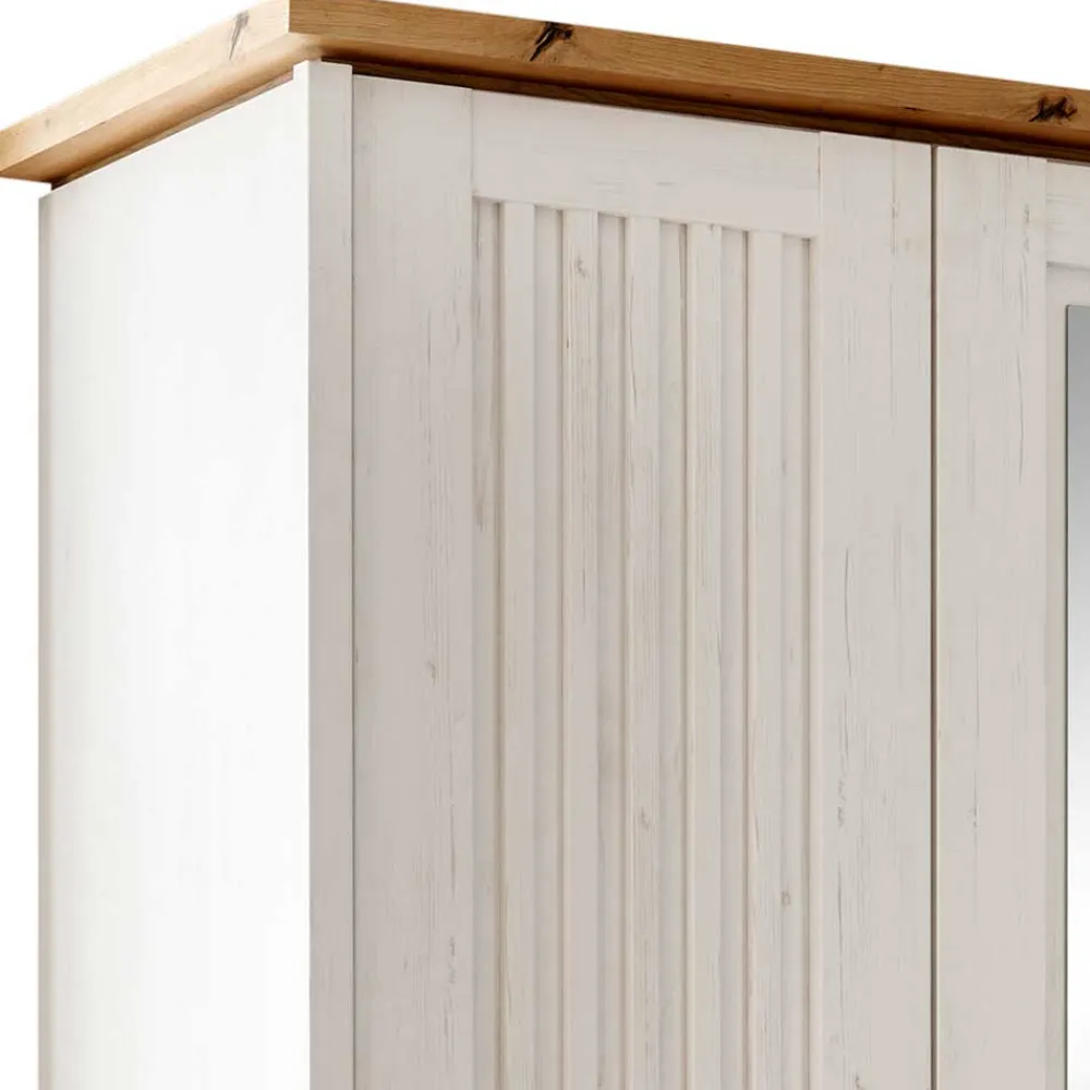 - Formschöner Kleiderschrank in Pinie Weiß und Eichefarben