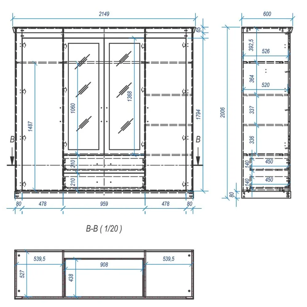 - 215 cm Breit, 201 cm Hoch, 60 cm Tief