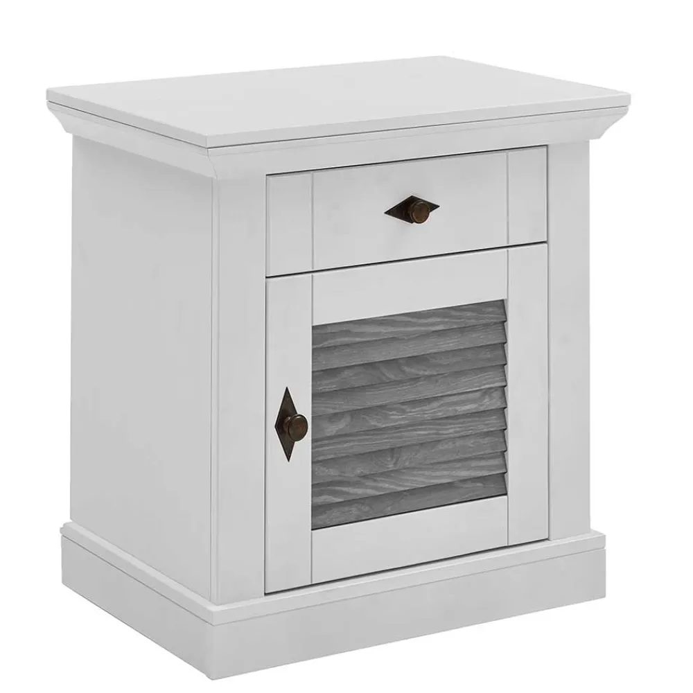 - Trendstarkes Bett in Weiß und Kiefer Grau