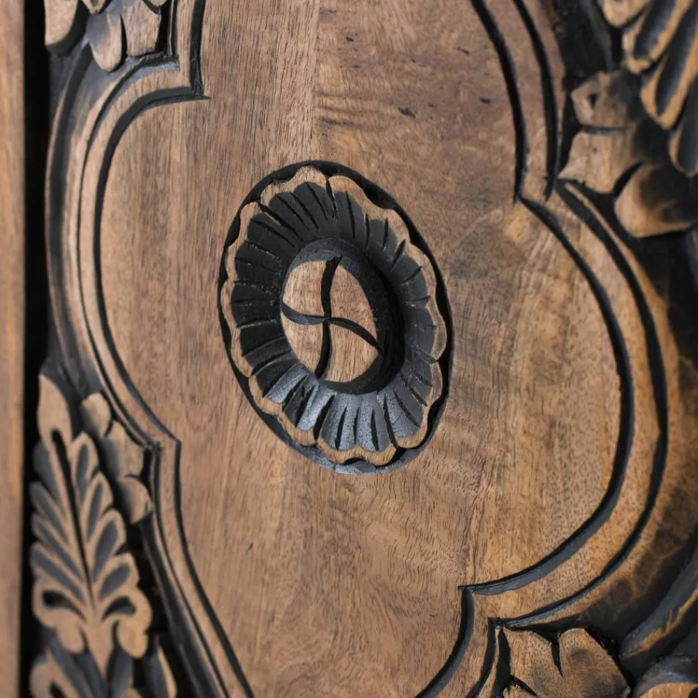 - Attraktiver Schrank in Mangoholz Naturfarben und Schwarz