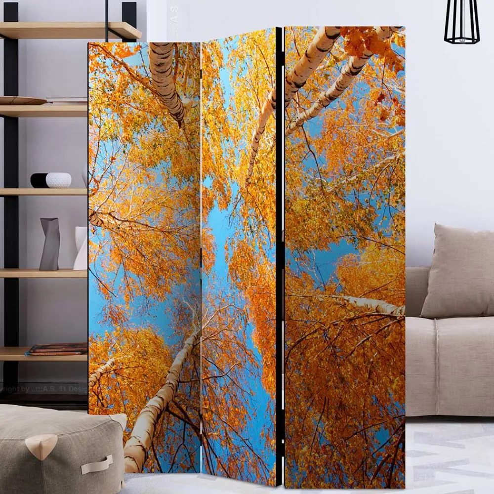 - Das Motiv zeigt Birken im Herbst aus der Froschperspektive