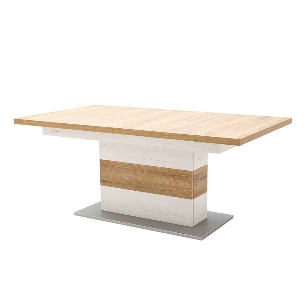 - Solider Esstisch in Pinie Weiß und Eichefarben