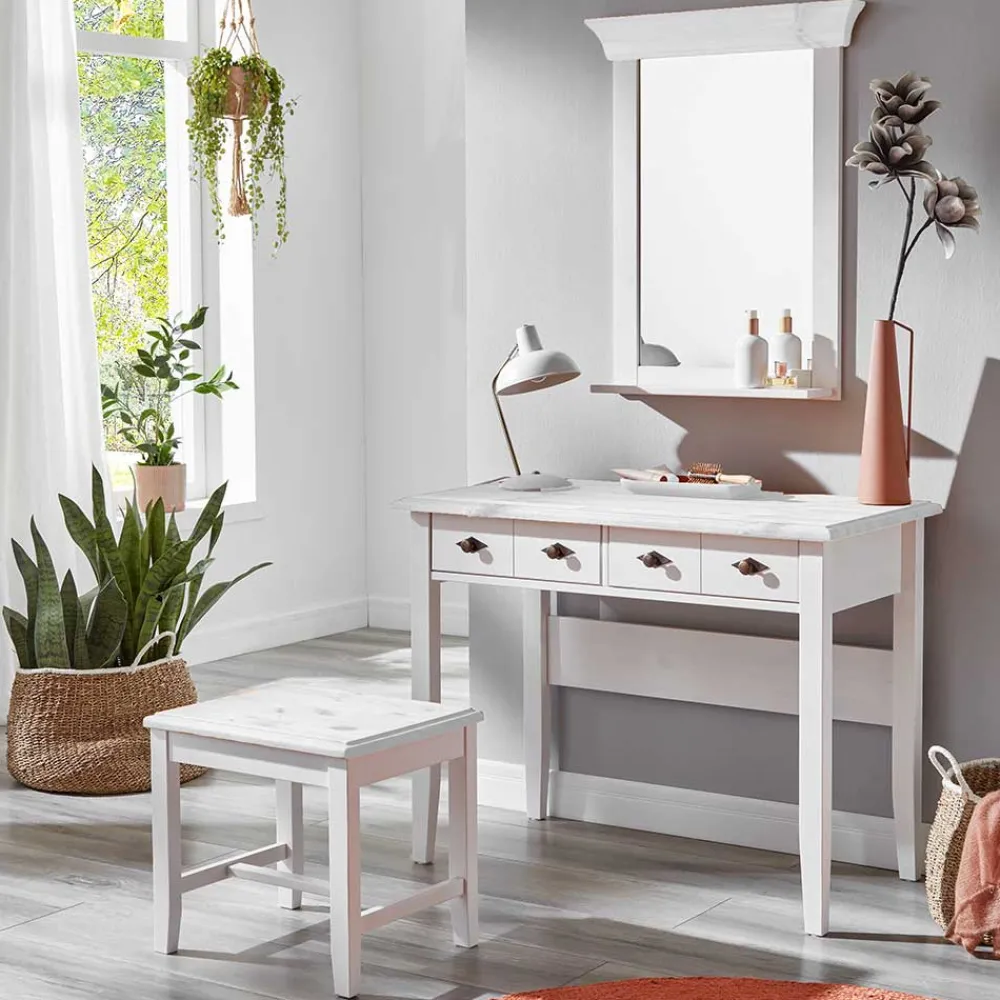 - Besteht aus Hocker, Schminktisch und Spiegel
