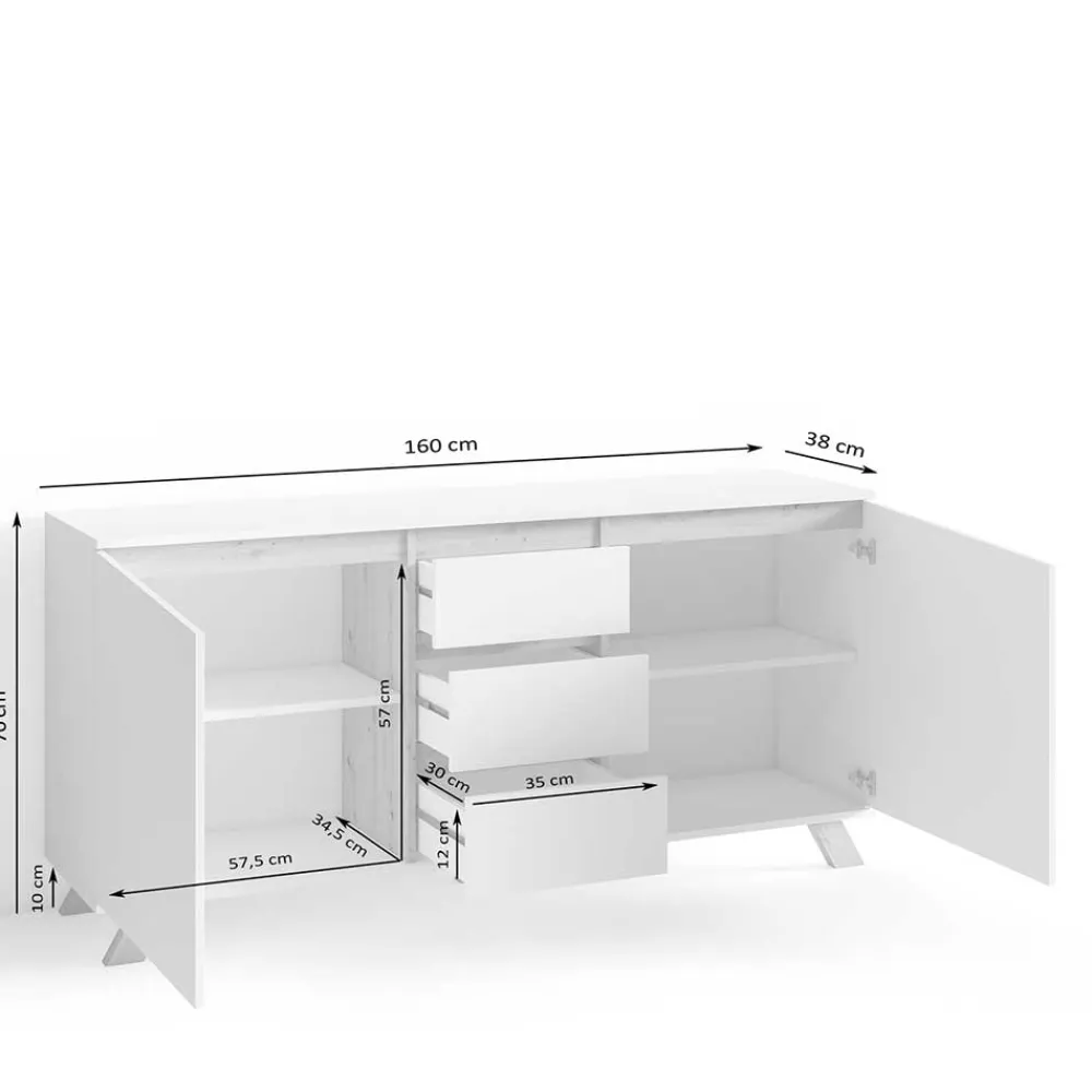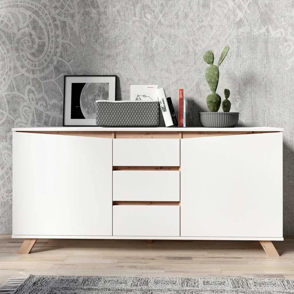 - Charmantes Sideboard in Weiß matt und Wildeichefarben