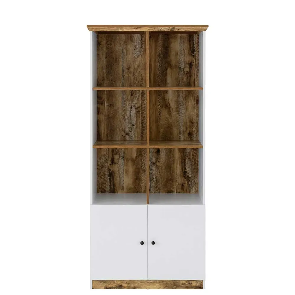 - Trendstarkes Regal in Weiß und Holzoptik Eiche verwittert