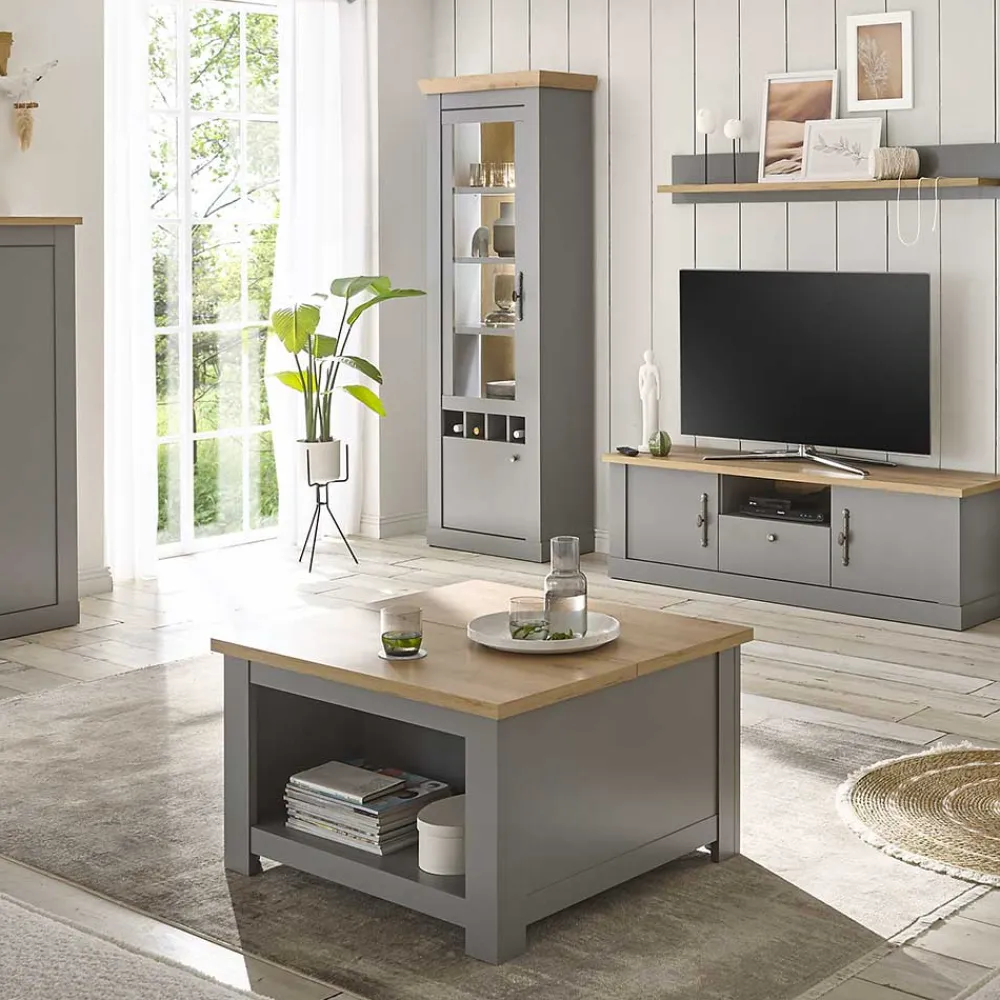 - Trendstarker Couchtisch in Lichtgrau und Eichefarben