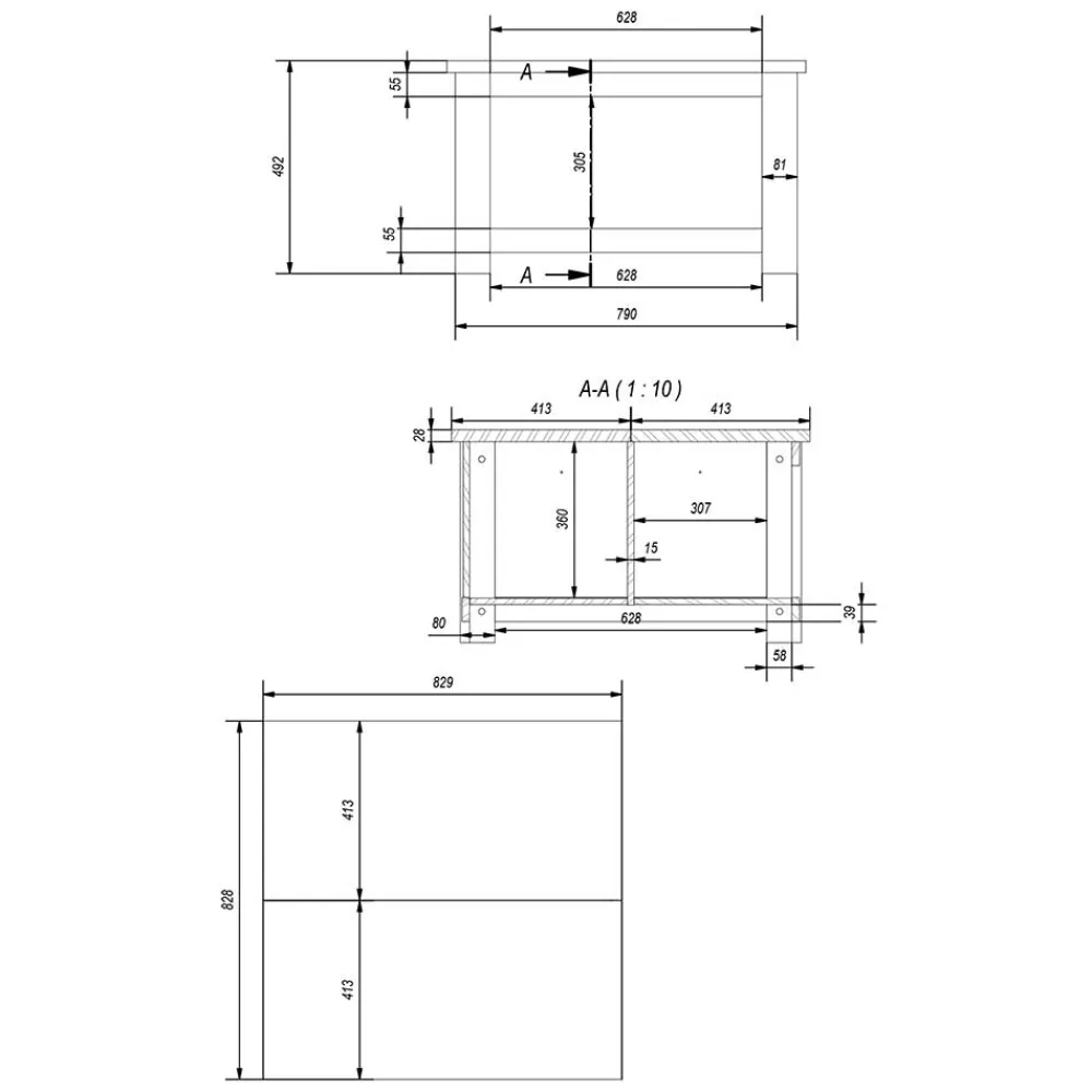 - Eine offene Ablage, Innenmaße (BxHxT): ca. 75x36x34 cm