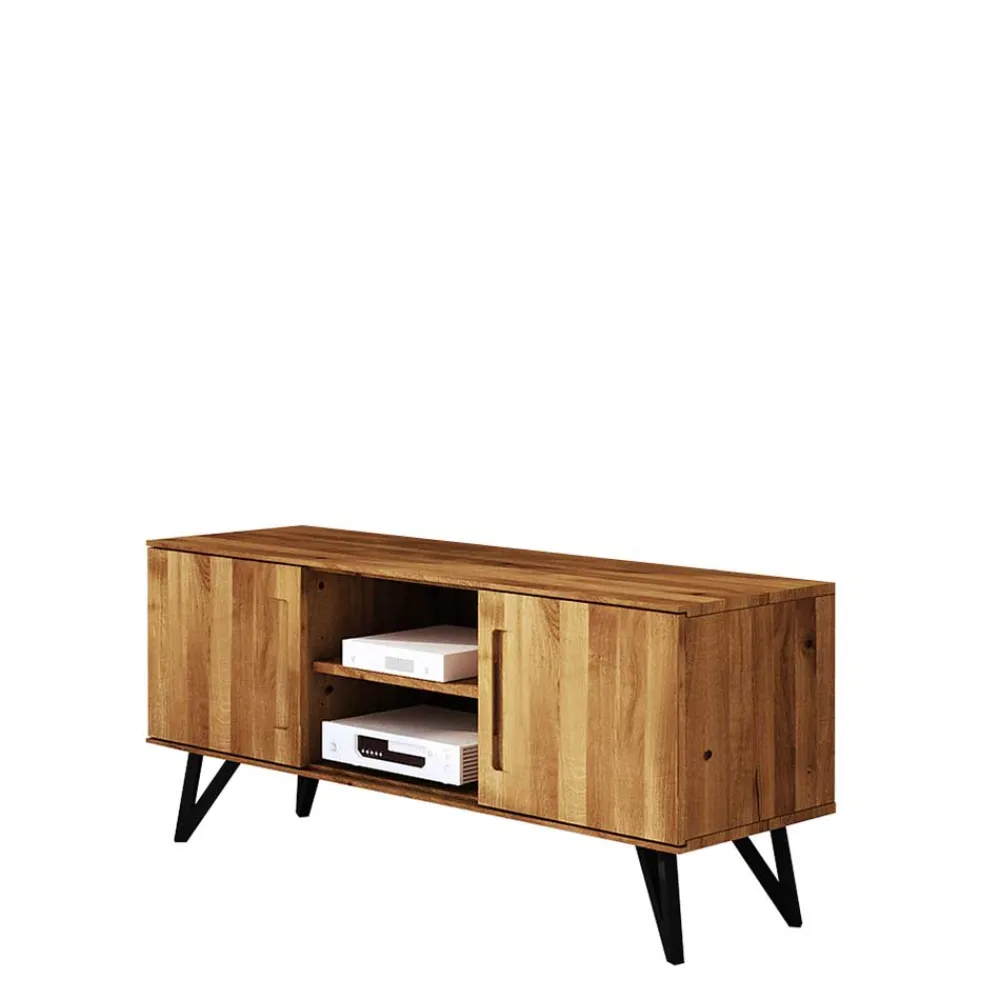 - Dekoratives TV-Board in Wildeichefarben und Schwarz